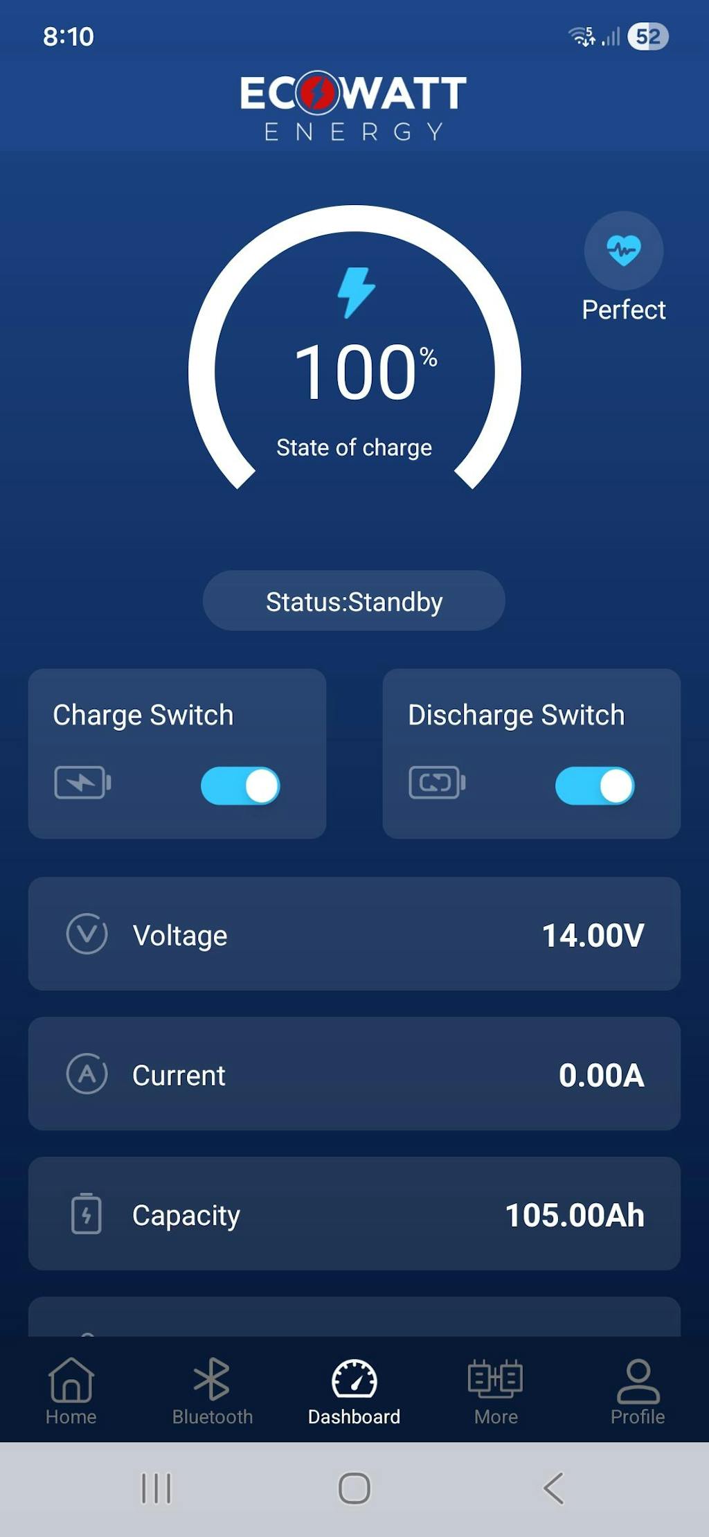 Bluetooth BMS: Yes, via EcoWatt Energy Connect app
